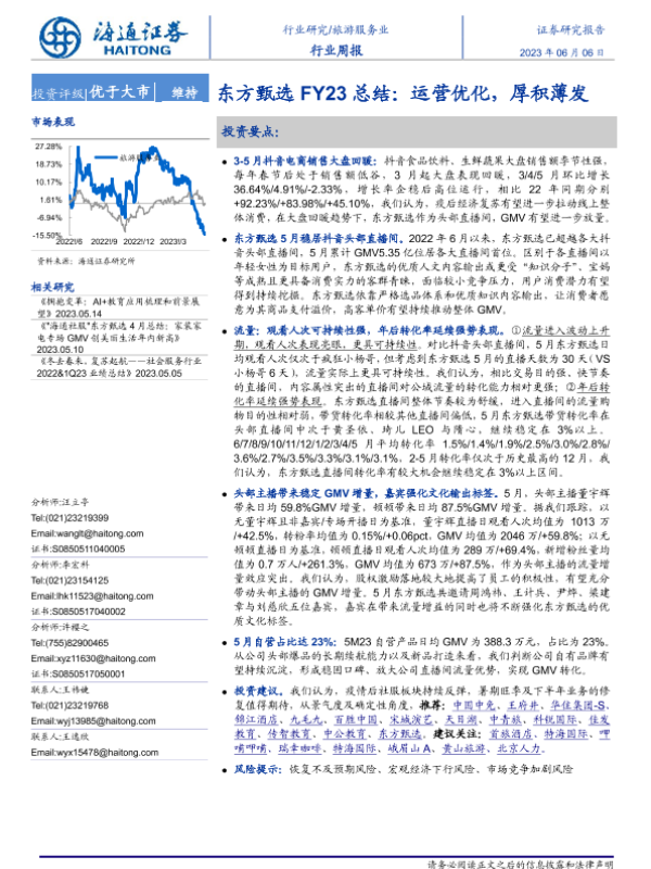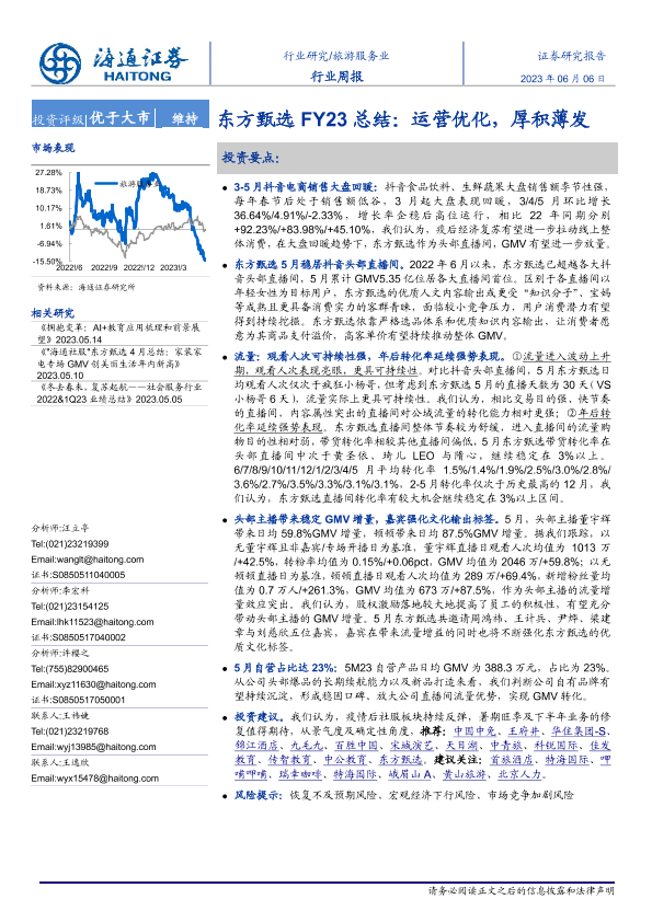 【海通证券】【20230606】旅游服务业行业周报:东方甄选FY23总结:运营优化,厚积薄发-11页