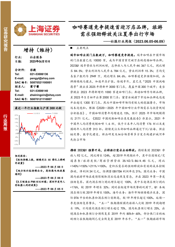 【上海证券】【20230610】社服行业周报:咖啡赛道竞争提速首迎万店品牌,旅游需求强劲释放关注夏季出行市场-12页