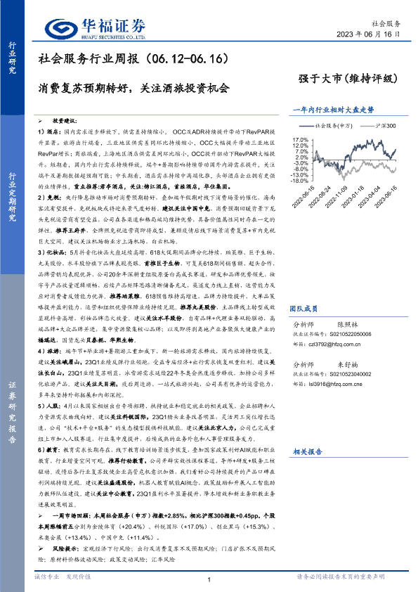 【华福证券】【20230616】社会服务行业周报:消费复苏预期转好,关注酒旅投资机会-25页