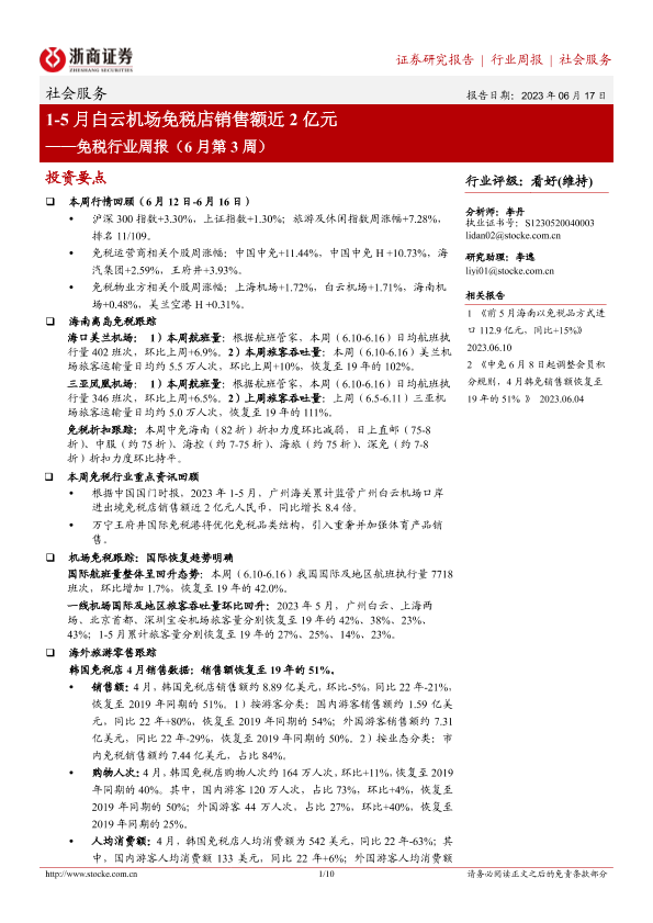 【浙商证券】【20230617】1-5月白云机场免税店销售额近2亿元-10页