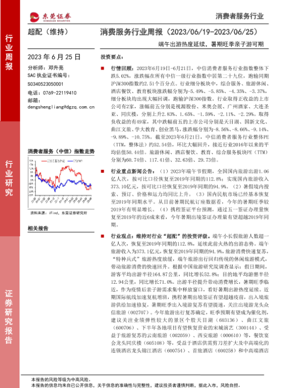 【东莞证券】【20230625】消费服务行业周报:端午出游热度延续,暑期旺季亲子游可期-11页