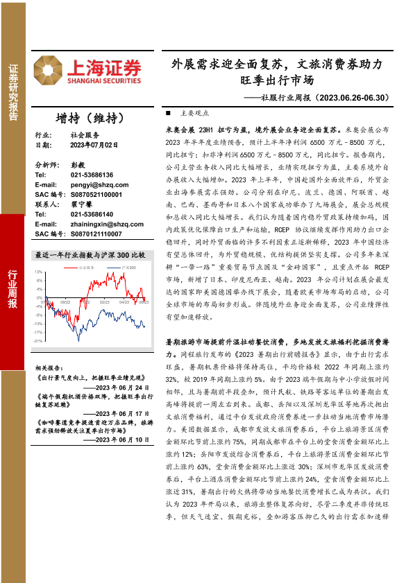【上海证券】【20230702】社服行业周报:外展需求迎全面复苏,文旅消费券助力旺季出行市场-11页
