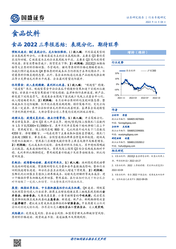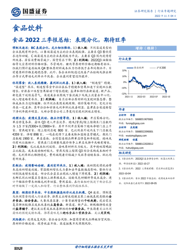 【国盛证券】【20221104】食品饮料行业2022三季报总结:表现分化,期待旺季-21页