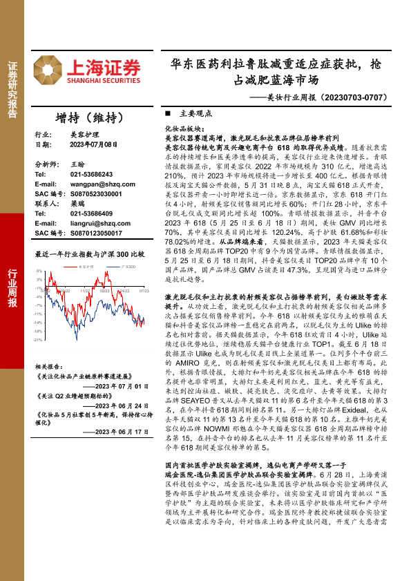 【上海证券】【20230708】美妆行业周报:华东医药利拉鲁肽减重适应症获批,抢占减肥蓝海市场-22页