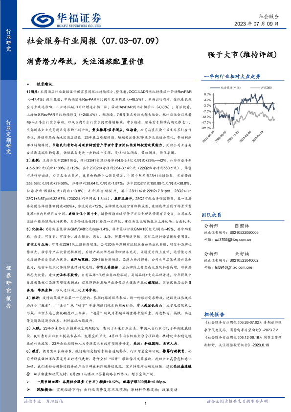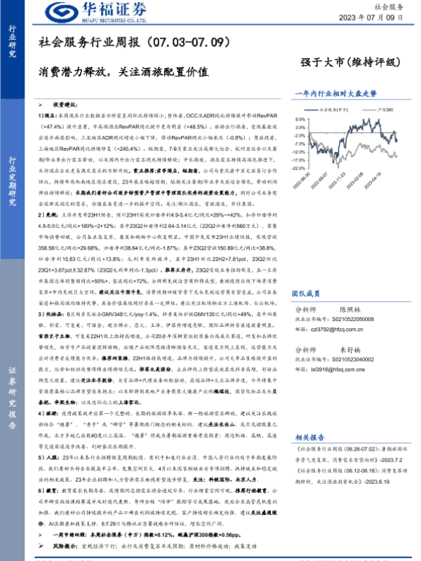 【华福证券】【20230709】社会服务行业周报:消费潜力释放,关注酒旅配置价值-26页
