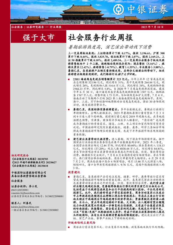 【中银证券】【20230710】社会服务行业周报:暑期旅游热度高,演艺演出带动线下消费-19页