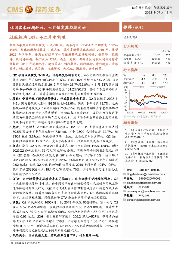 【海通证券】【20230713】社服板块2023年二季度前瞻:休闲需求逐渐释放,出行链复苏持续向好-15页
