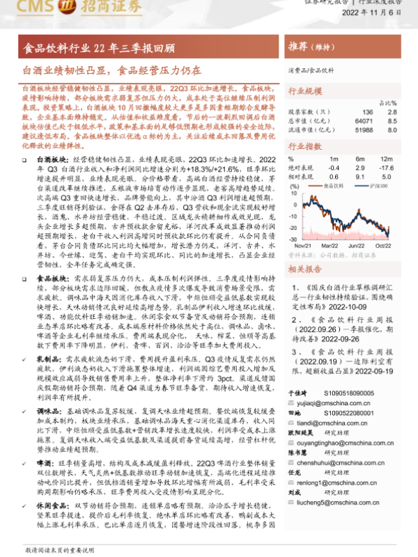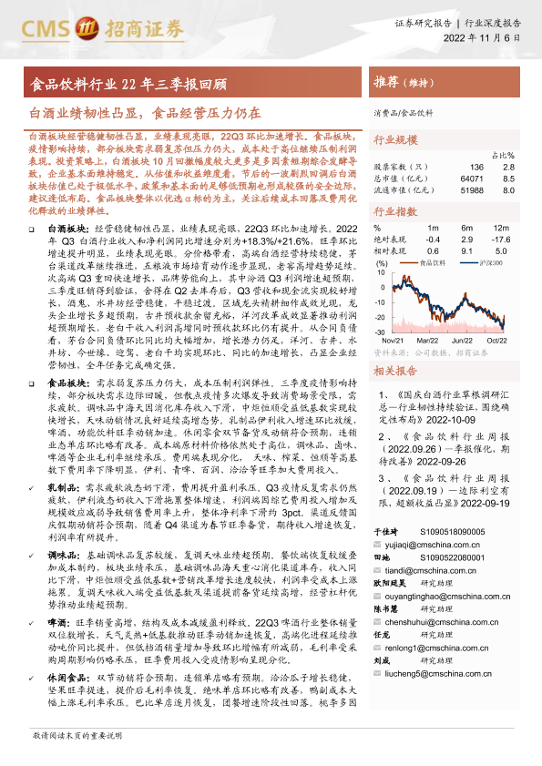 【海通证券】【20221106】食品饮料行业22年三季报回顾:白酒业绩韧性凸显,食品经营压力仍在-18页
