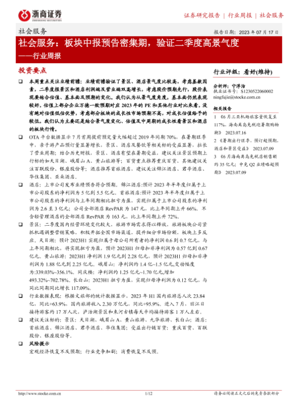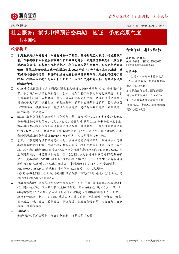 【浙商证券】【20230717】社会服务:板块中报预告密集期,验证二季度高景气度-12页