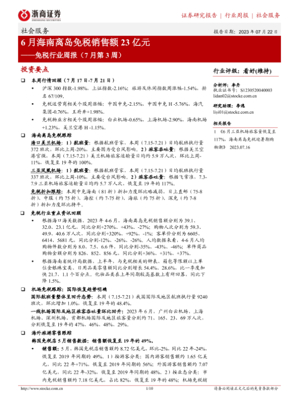 【浙商证券】【20230722】6月海南离岛免税销售额23亿元-10页