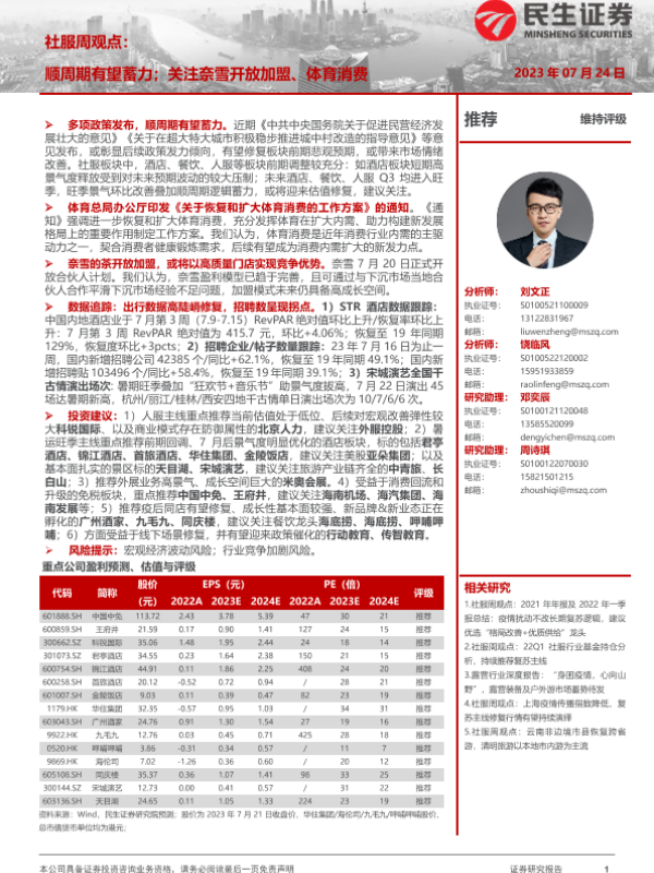 【民生证券】【20230724】社服周观点:顺周期有望蓄力;关注奈雪开放加盟、体育消费-23页