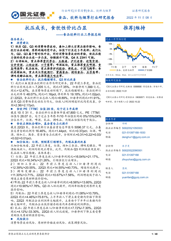 【国元证券】【20221109】食品饮料行业三季报总结:抗压成长,食饮性价比凸显-40页
