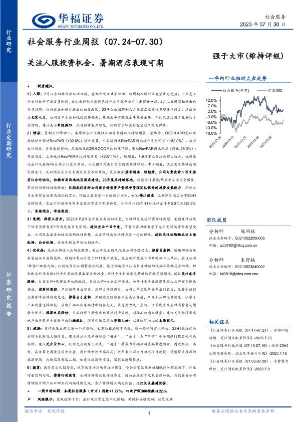 【华福证券】【20230730】社会服务行业周报:关注人服投资机会,暑期酒店表现可期-30页