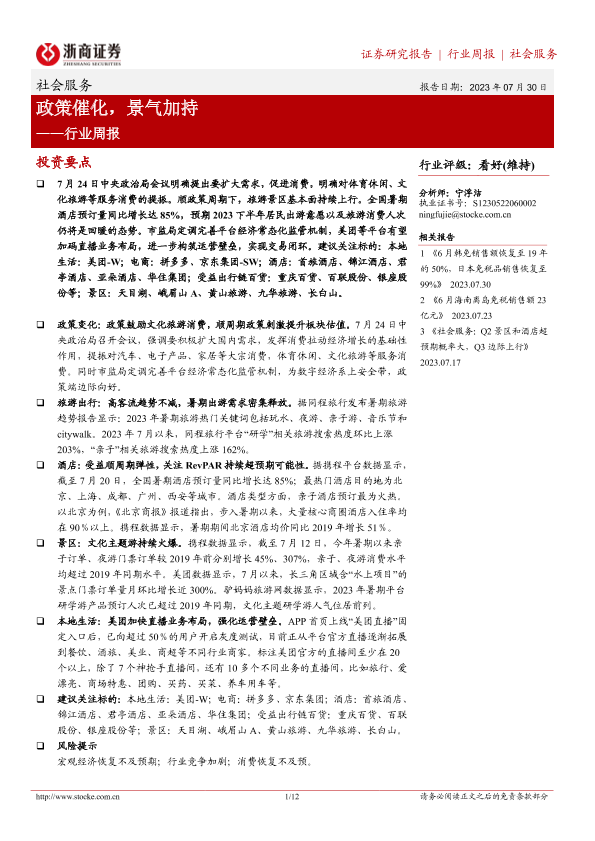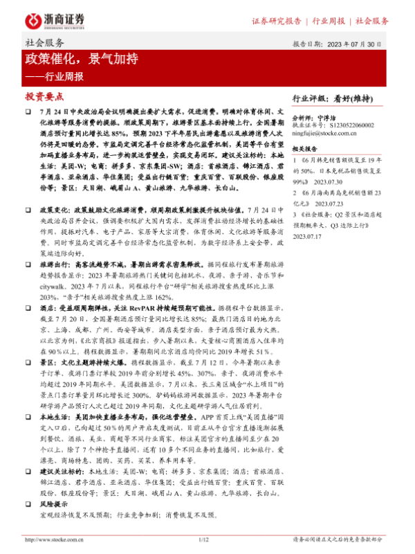 【浙商证券】【20230730】社会服务行业周报:政策催化,景气加持-12页