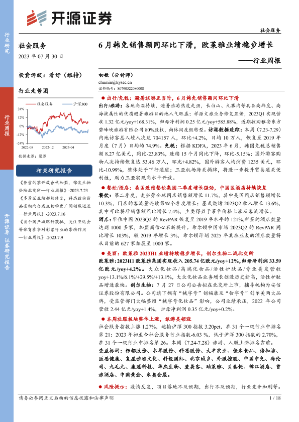 【开源证券】【20230730】6月韩免销售额同环比下滑,欧莱雅业绩稳步增长-18页