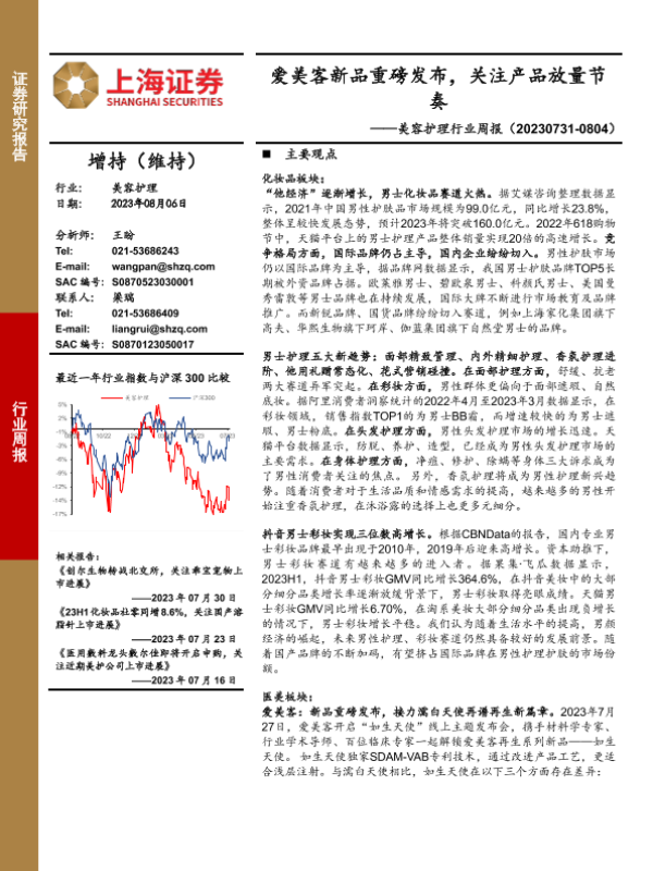 【上海证券】【20230806】美容护理行业周报:爱美客新品重磅发布,关注产品放量节奏-22页
