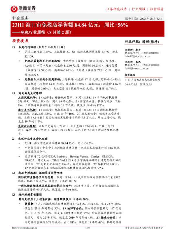 【浙商证券】【20230812】23H1海口市免税店零售额84.84亿元,同比+56%-10页