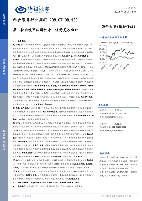 【华福证券】【20230813】社会服务行业周报:第三批出境团队游放开,消费复苏向好-30页