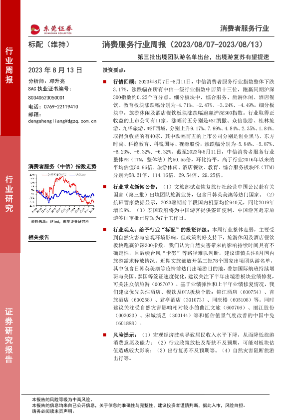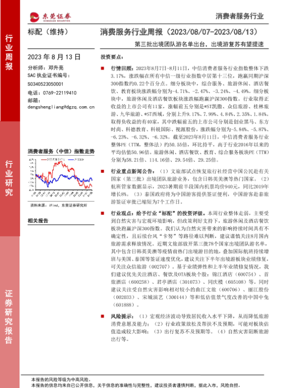 【东莞证券】【20230813】消费服务行业周报:第三批出境团队游名单出台,出境游复苏有望提速-10页