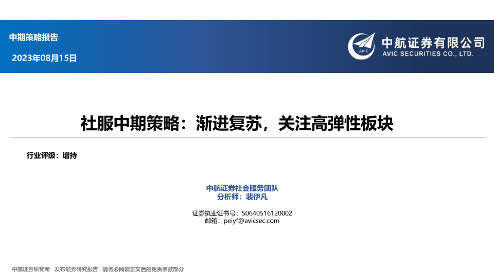 【中航证券】【20230815】社服中期策略:渐进复苏,关注高弹性板块-31页