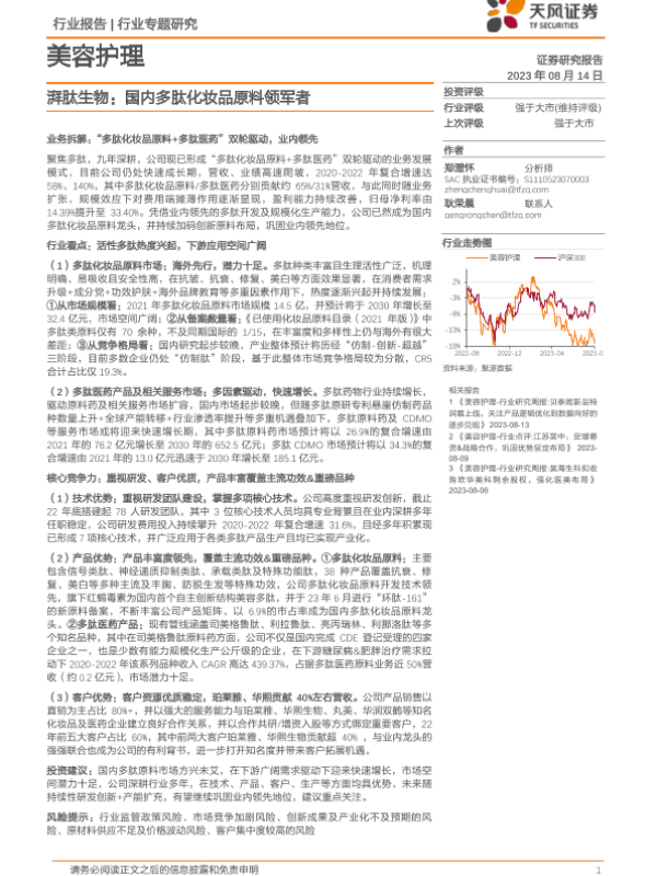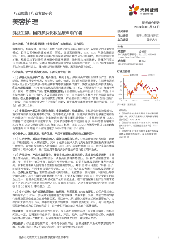 【天风证券】【20230814】湃肽生物:国内多肽化妆品原料领军者-20页
