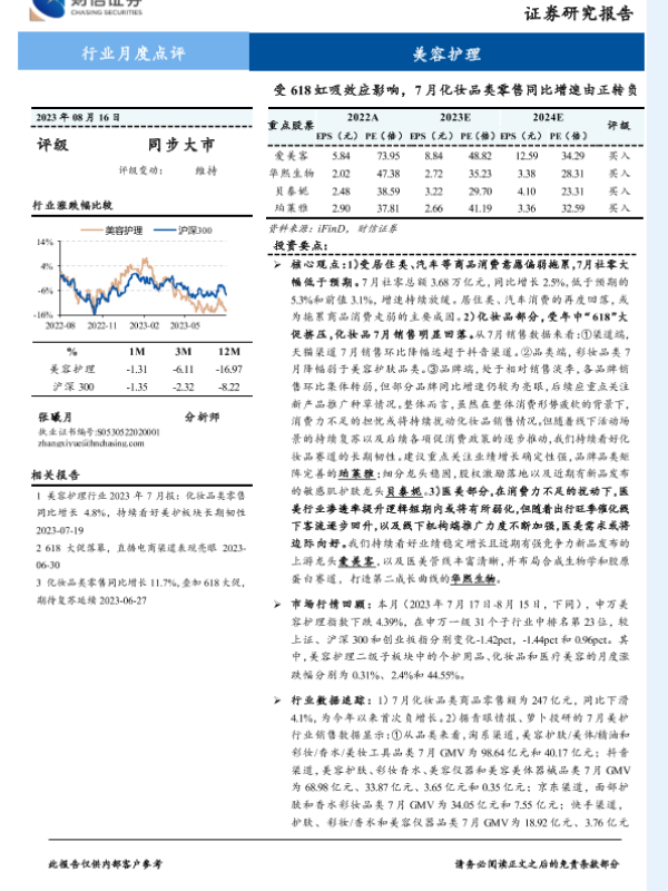 【财信证券】【20230816】美容护理行业月度点评:受618虹吸效应影响,7月化妆品类零售同比增速由正转负-14页