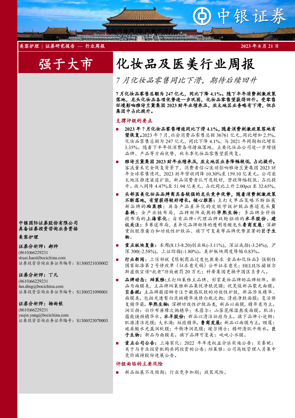 【中银证券】【20230821】7月化妆品零售同比下滑,期待后续回升-14页