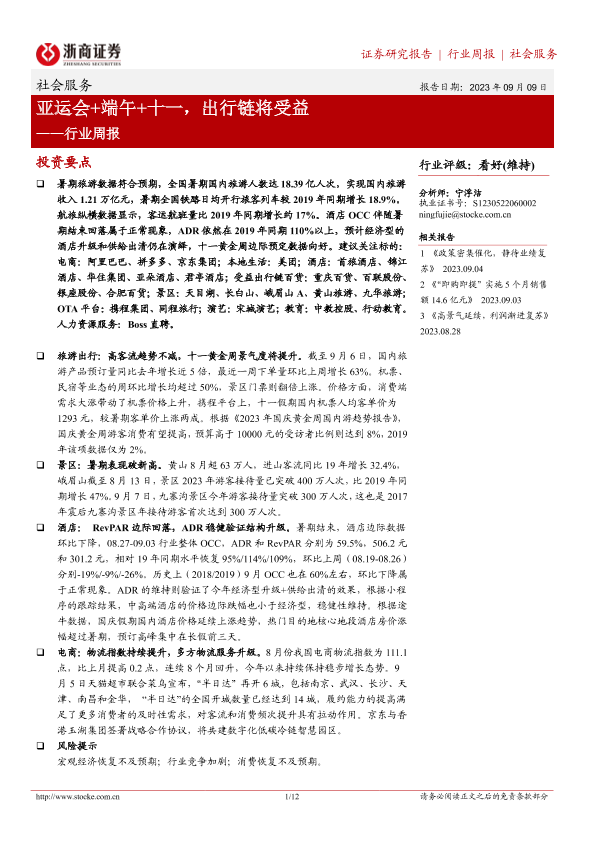 【浙商证券】【20230909】社会服务行业周报:亚运会+端午+十一,出行链将受益-12页