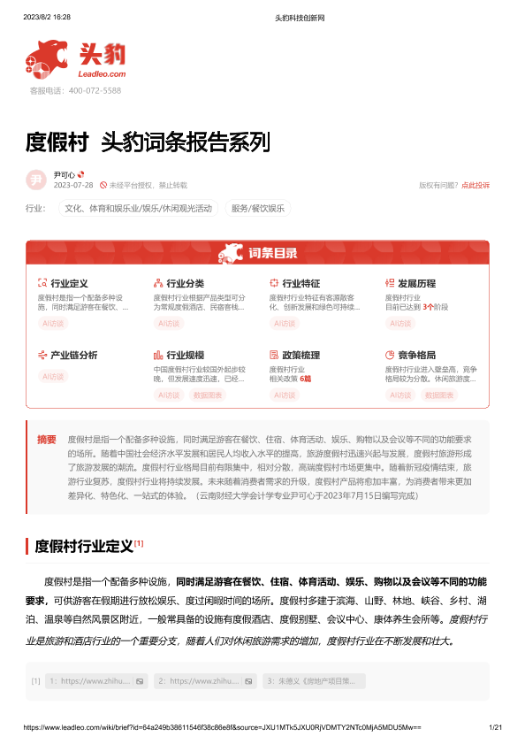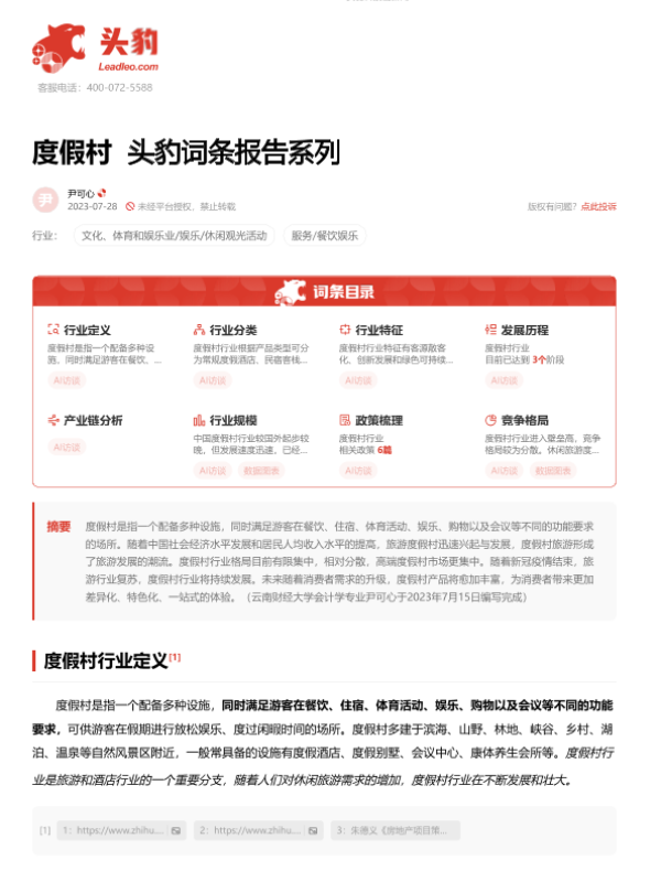 【头豹研究院】【20230728】度假村 头豹词条报告系列-21页