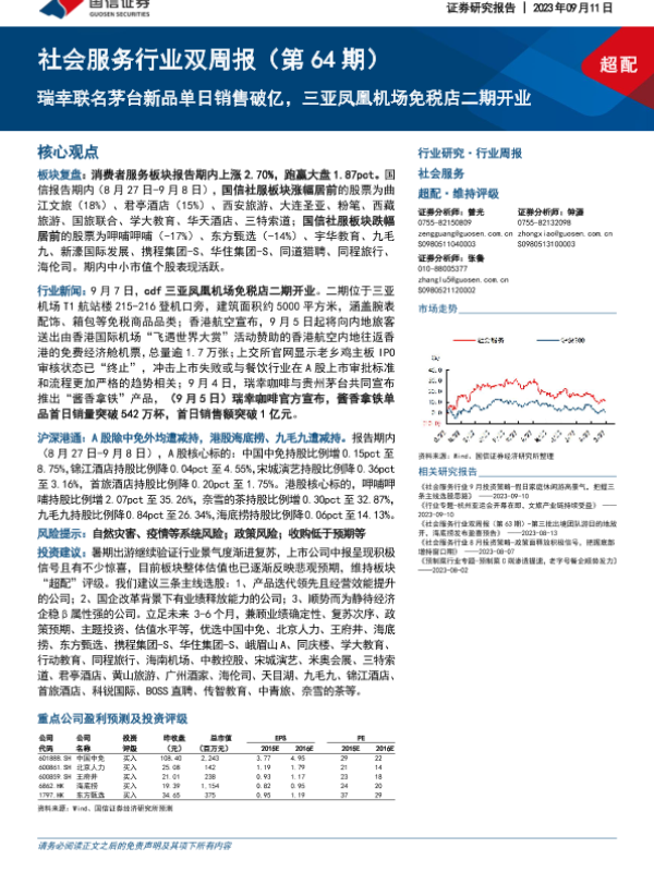 【国信证券】【20230911】社会服务行业双周报:瑞幸联名茅台新品单日销售破亿,三亚凤凰机场免税店二期开业-11页