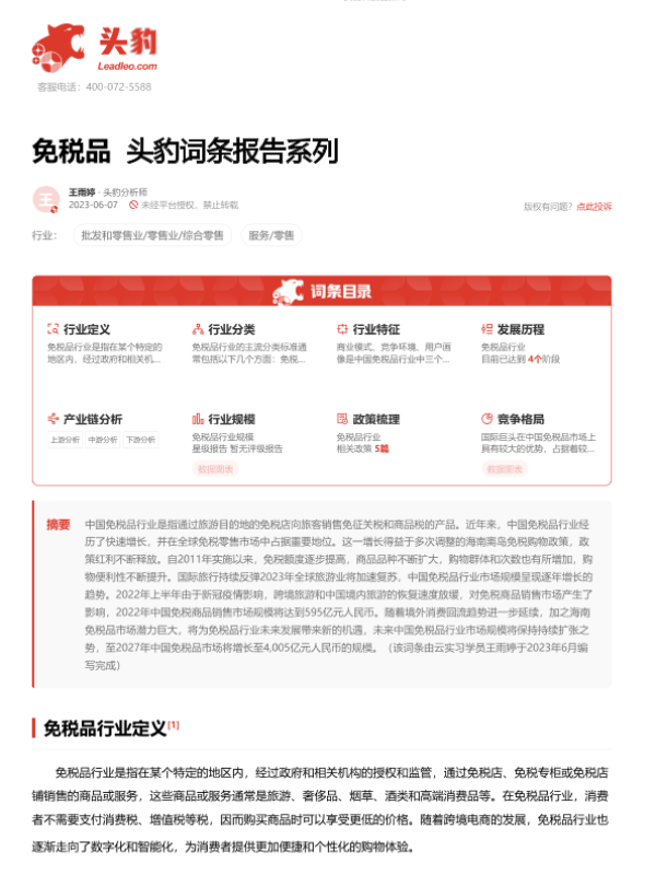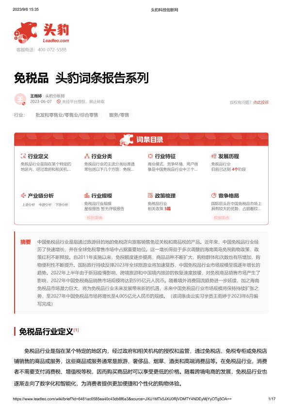 【头豹研究院】【20230911】免税品 头豹词条报告系列-17页