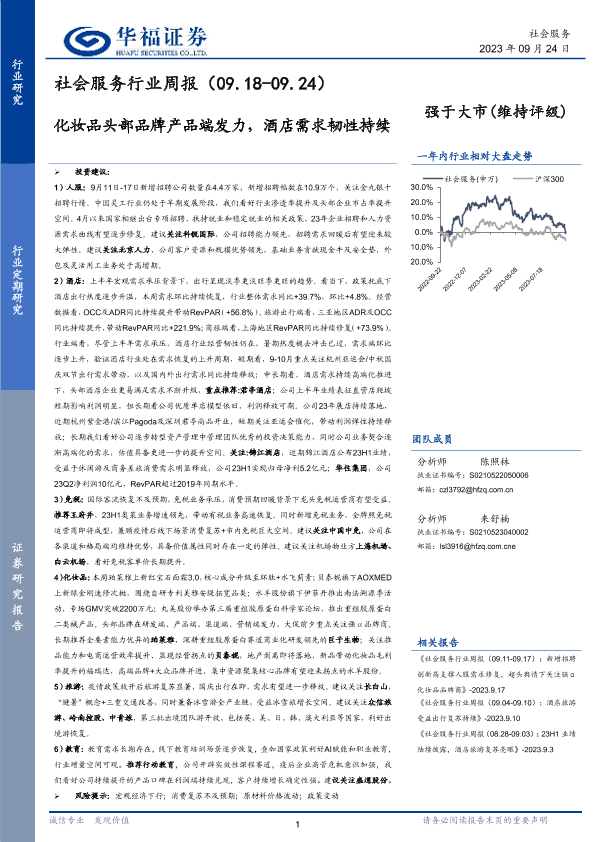 【华福证券】【20230924】社会服务行业周报:化妆品头部品牌产品端发力,酒店需求韧性持续-30页