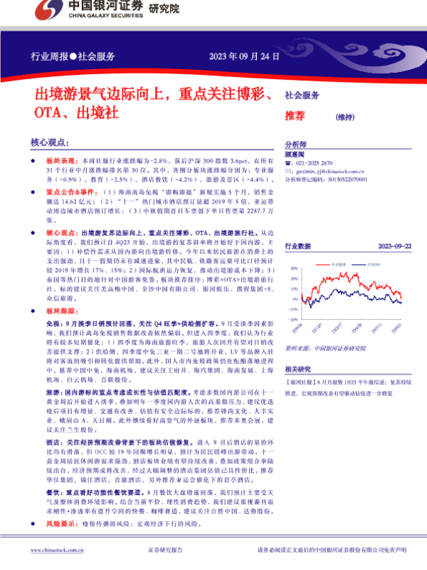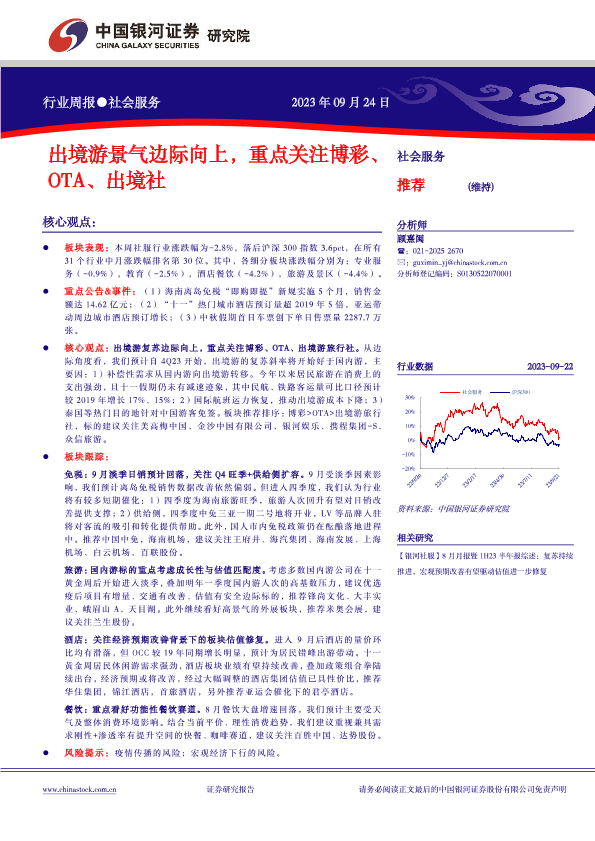 【银河证券】【20230924】社会服务行业周报:出境游景气边际向上,重点关注博彩、OTA、出境社-14页