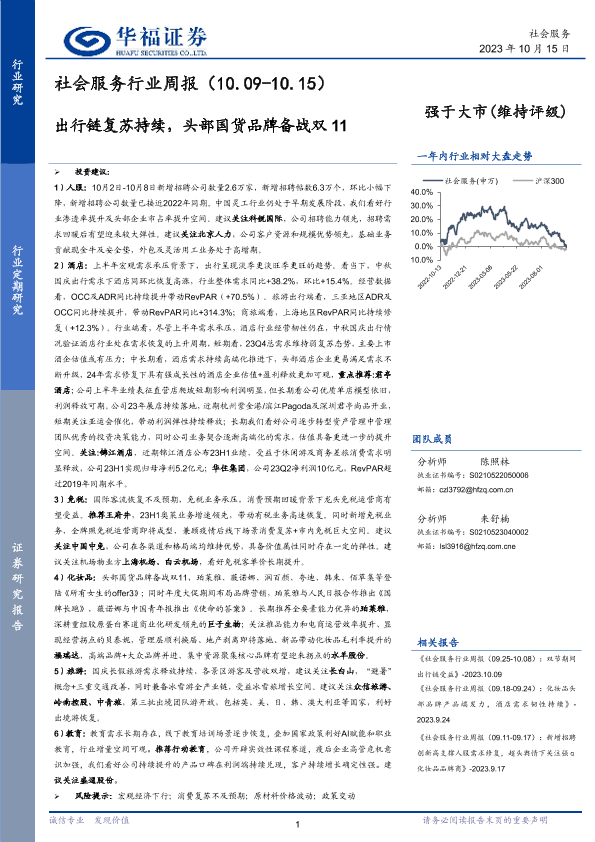 【华福证券】【20231015】社会服务行业周报:出行链复苏持续,头部国货品牌备战双11-26页