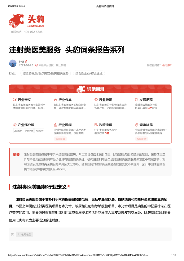 【头豹研究院】【2023】注射类医美服务 头豹词条报告系列-12页