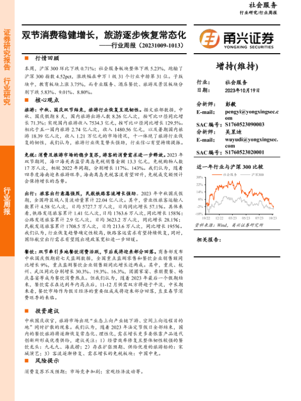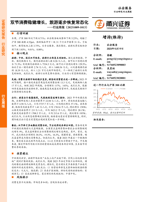 【甬兴证券】【20231019】社会服务行业周报:双节消费稳健增长,旅游逐步恢复常态化-11页
