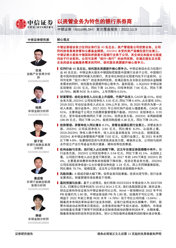 【中信证券】【20221109】首次覆盖报告:以资管业务为特色的银行系券商-20页
