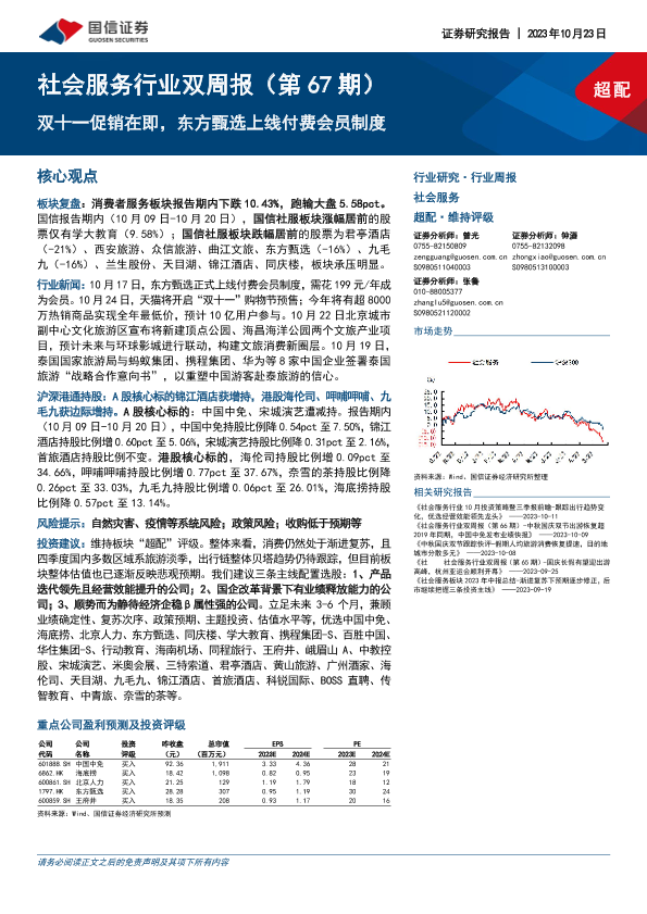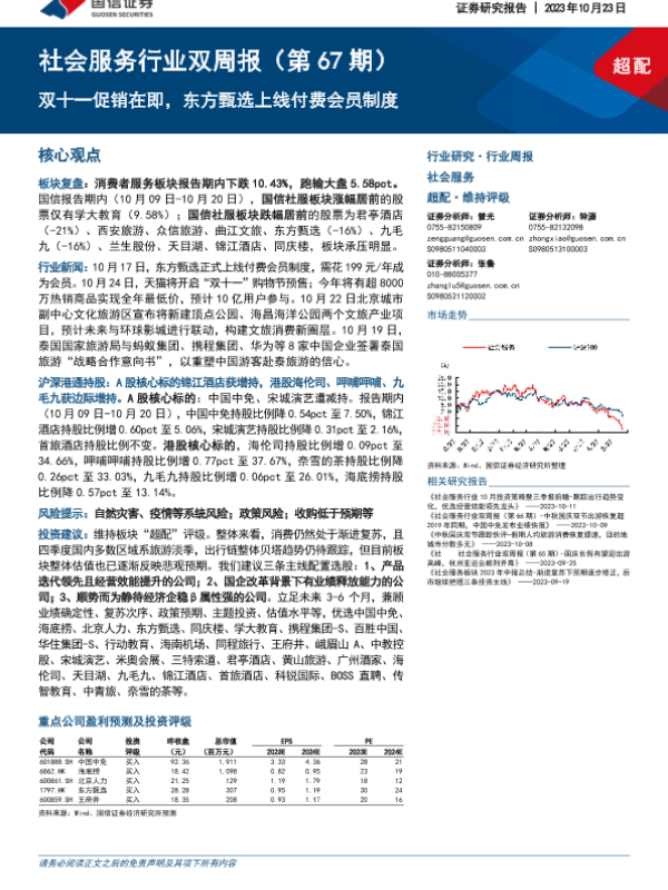 【国信证券】【20231023】社会服务行业双周报:双十一促销在即,东方甄选上线付费会员制度-11页