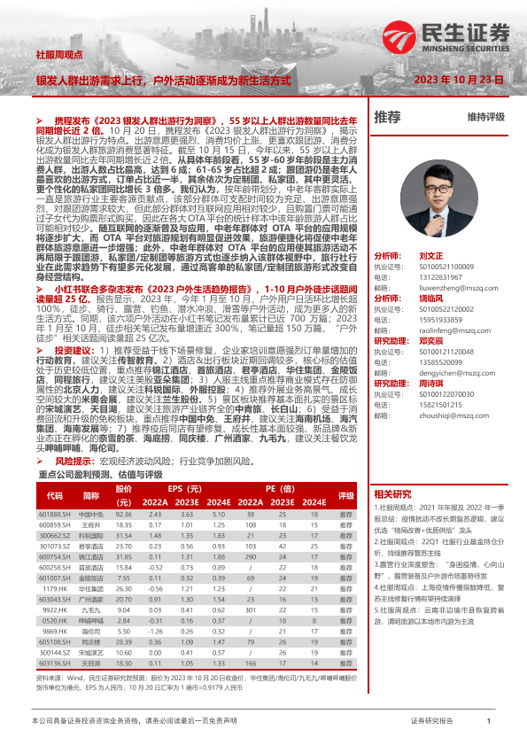 【民生证券】【20231023】社服周观点:银发人群出游需求上行,户外活动逐渐成为新生活方式-18页