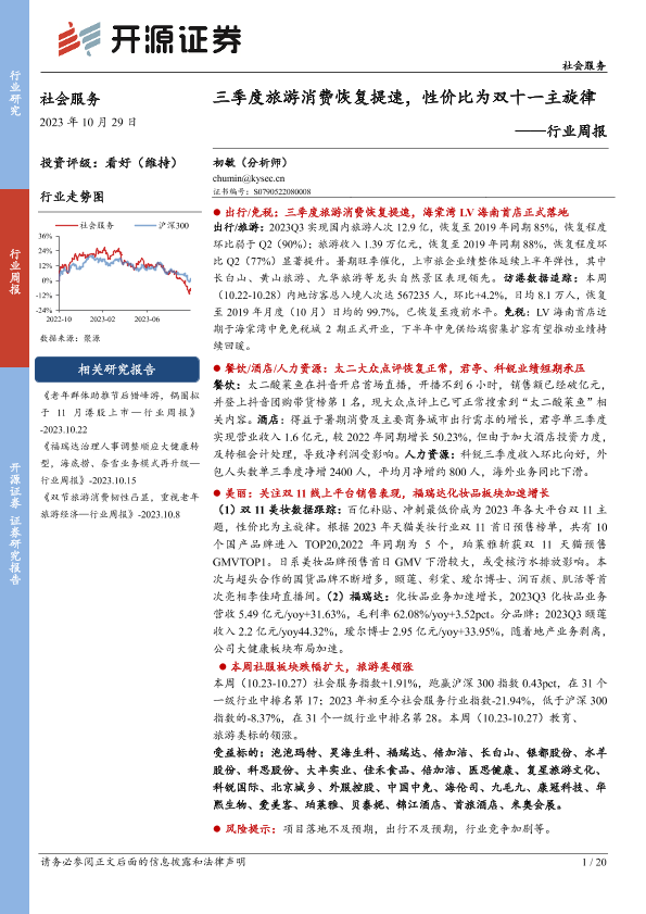 【开源证券】【20231029】三季度旅游消费恢复提速,性价比为双十一主旋律-20页