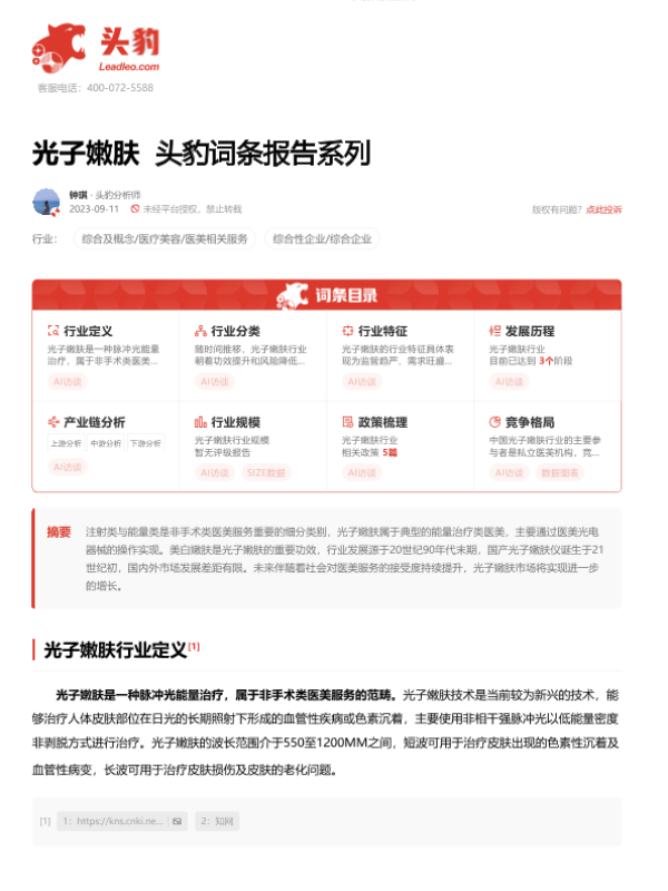 【头豹研究院】【20230911】光子嫩肤 头豹词条报告系列-14页