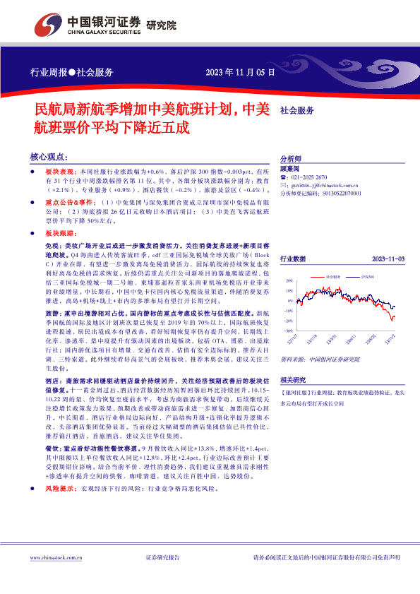【银河证券】【20231105】民航局新航季增加中美航班计划,中美航班票价平均下降近五成-15页