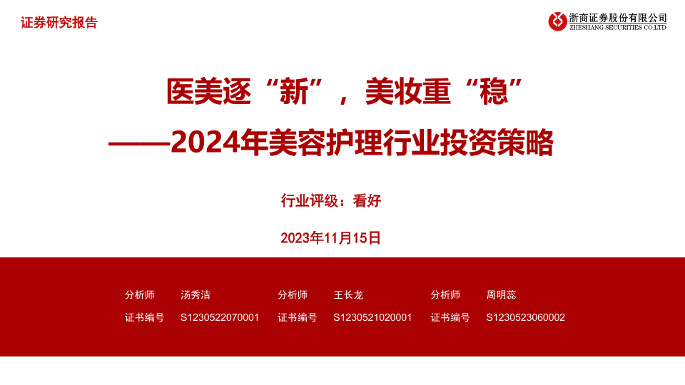 【浙商证券】【20231115】2024年美容护理行业投资策略:医美逐‘新’,美妆重‘稳’-36页