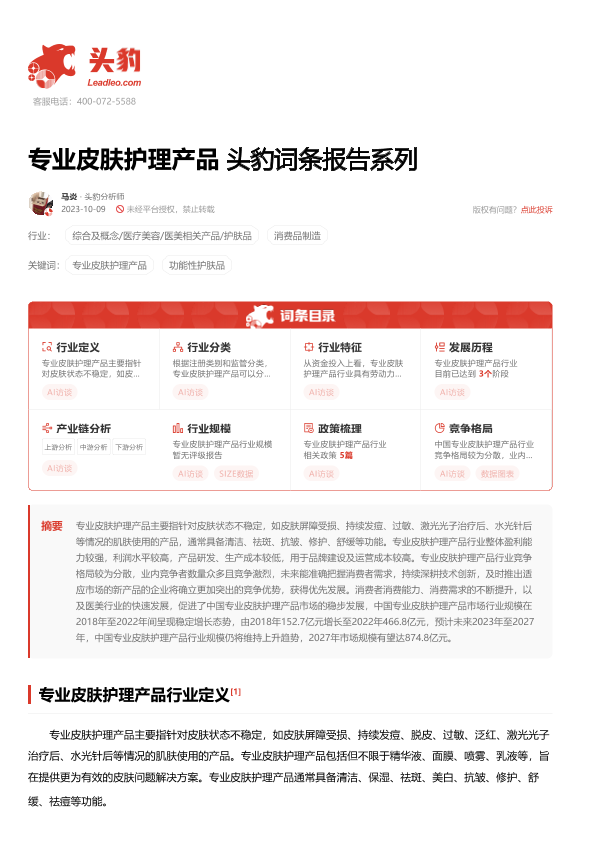 【头豹研究院】【20231009】专业皮肤护理产品 头豹词条报告系列-17页