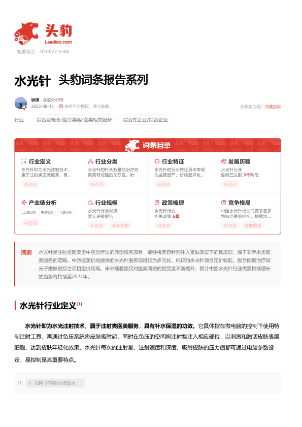 【头豹研究院】【20240105】水光针 头豹词条报告系列-12页