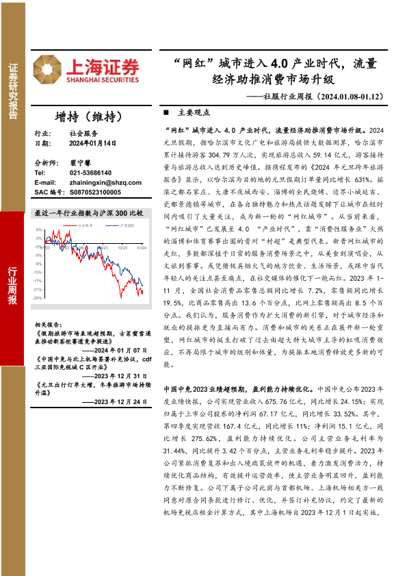 【上海证券】【20240114】社服行业周报:“网红”城市进入4.0产业时代,流量经济助推消费市场升级-13页