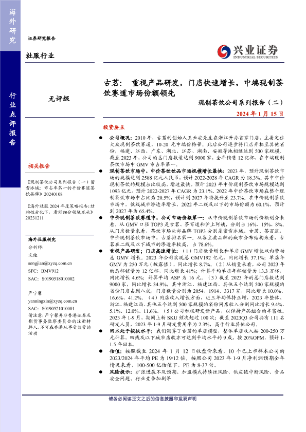 【兴业证券】【20240115】古茗:重视产品研发,门店快速增长,中端现制茶饮赛道市场份额领先-12页
