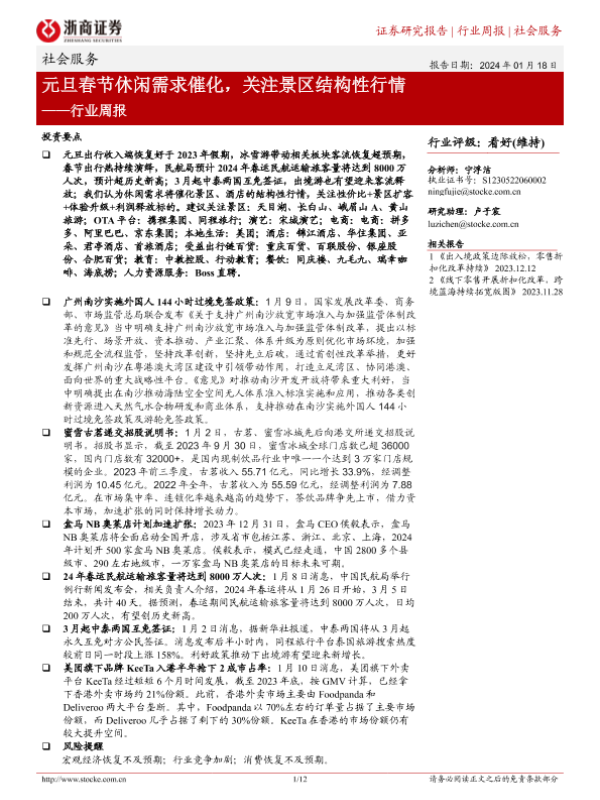 【浙商证券】【20240118】元旦春节休闲需求催化,关注景区结构性行情-12页