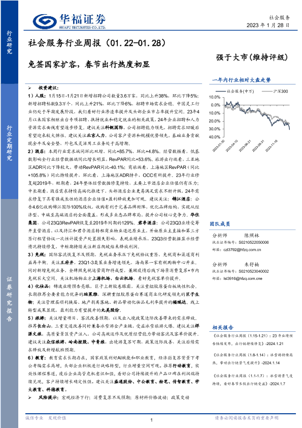 【华福证券】【20240128】社会服务行业周报:免签国家扩容,春节出行热度初显-25页