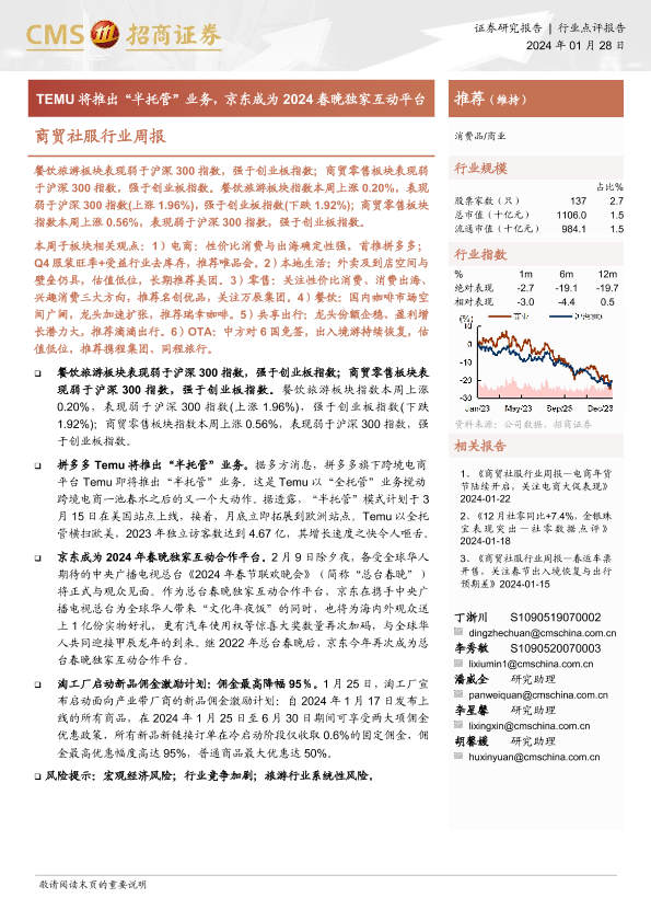 【海通证券】【20240128】商贸社服行业周报:TEMU将推出“半托管”业务,京东成为2024春晚独家互动平台-11页